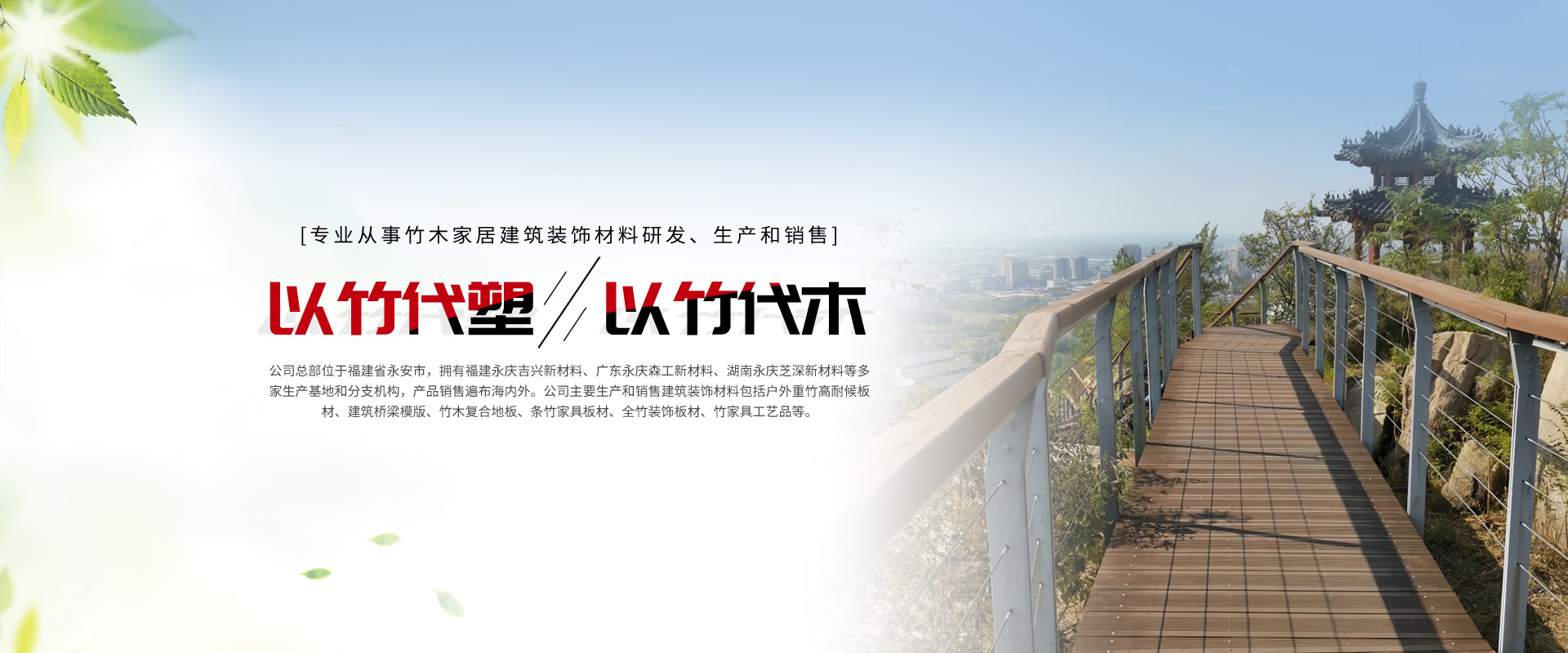廈門永慶家居建材有限公司是福建永慶新材科技集團公司旗下一家專業(yè)從事竹木家居建筑裝飾材料研發(fā)、生產和銷售的企業(yè)。公司總部位于福建省永安市,擁有福建永慶吉興新材料、廣東永慶森工新材料、湖南永慶芝深新材料等多家生產基地和分支機構,產品銷售遍布海內外。公司主要生產和銷售建筑裝飾材料包括戶外重竹高耐候板材、建筑橋梁模版、竹木復合地板、條竹家具板材、全竹裝飾板材、竹家具工藝品等。公司注重產品品質和創(chuàng)新,引進世界先進的生產設備和技術,不斷推出高品質、高性能、環(huán)保、節(jié)能的新型竹木建筑裝飾材料,獲得了廣泛的市場認可和用戶信賴。